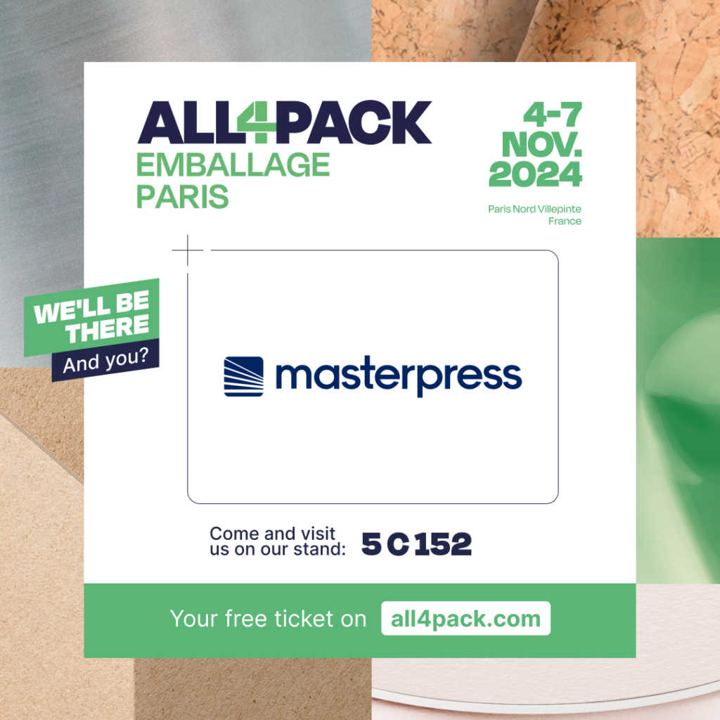 We invite you to visit Masterpress at All4Pack 2024, taking place from November 4 to 7, 2024, in Paris. We will be showcasing our latest innovations in sustainable packaging solutions for the FMCG sector at Booth 5C152.